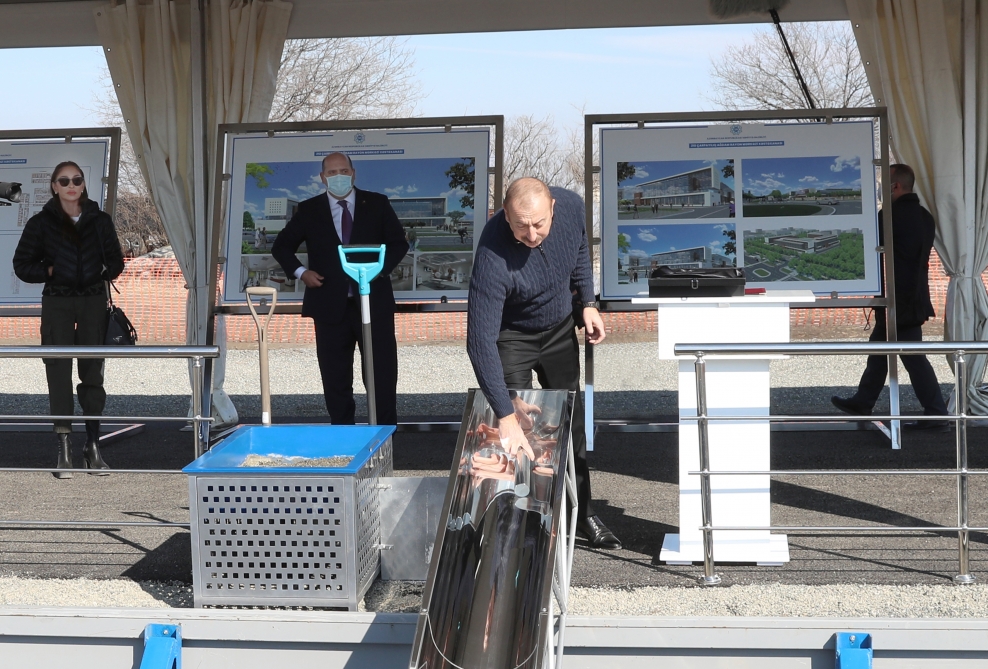 Aghdam, February 14, AZERTAC President of the Republic of Azerbaijan Ilham Aliyev and First Lady Mehriban Aliyeva have attended a groundbreaking ceremony for the 210-bed Aghdam District Central Hospital. Special Representative of the President of the Republic of Azerbaijan in the liberated territories of the Karabakh Economic Region (except Shusha district) Emin Huseynov informed the head of state and the First Lady of the work to be done. The hospital will occupy an area of more than 6 hectares. President Ilham Aliyev laid the foundation stone for the hospital.