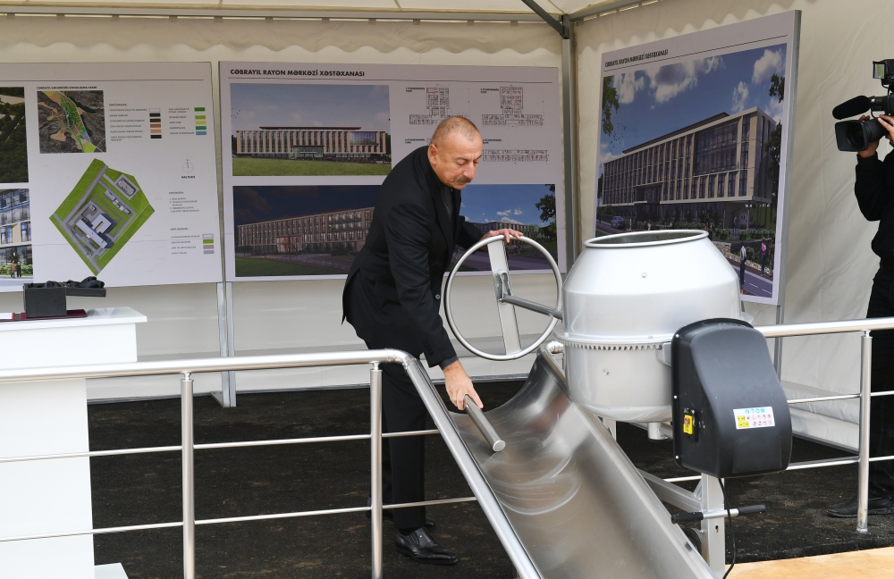 President Ilham Aliyev laid a foundation stone for the Jabrayil District Central Hospital.