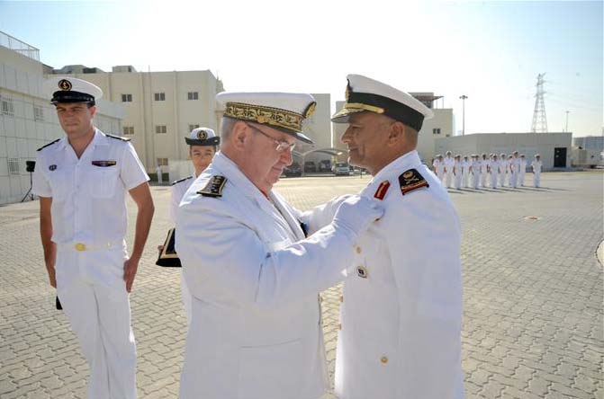 Abu Dhabi: The Chief of the UAE Naval Forces, Staff Vice Admiral Ibrahim Salem Al Musharrakh, has received in his office this morning, France's Chief of Naval Staff Admiral Bernard Rogel. During the meeting attended by a number of Navy officers and the delegation accompanying the guest, the two sides discussed the naval topics of mutual interest, relations and ways to strengthen them to serve the common interest of the two countries. At the end of the visit, France's Chief of Naval Staff conferred the Officer of the Legion of Honour (the award of Officier de la Legion d'Honneur) granted to him by the President of the French Republic, on The Chief of the UAE Naval Forces. - Emirates News Agency, WAM