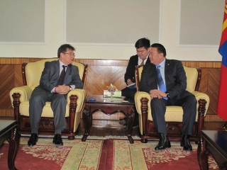 Ulaanbaatar /MONTSAME/ A chairman of a working group, which works on formulating the state policy on transport transportation and logistics, G.Batkhuu MP met Thursday Mr I.K.Azizov, the Ambassador Extraordinary and Plenipotentiary of the Russian Federation (RF) to Mongolia, in the State House. Mr Azizov thanked him for receiving and said he had already started several works. He also mentioned that the two countries have long-year historical ties, cooperating in many fields, and said Russia wants to share information on a renovation of the Ulaanbaatar Railways and on developing the transit transport and logistics. In response, Mr Batkhuu congratulated him on becoming the Ambassador to Mongolia and said he has been working on developing the bilateral cooperation in the infrastructure sector. He also talked about works regarding drawing up the state policy on transit transport and logistics. Mongolia wants to boost a fruitful cooperation with its neighbours, so a related clause will be reflected in the newest policy on railways, he said. He expressed a satisfaction with a sustainable development of the Mongolia-Russia relations at a parliamentary level.