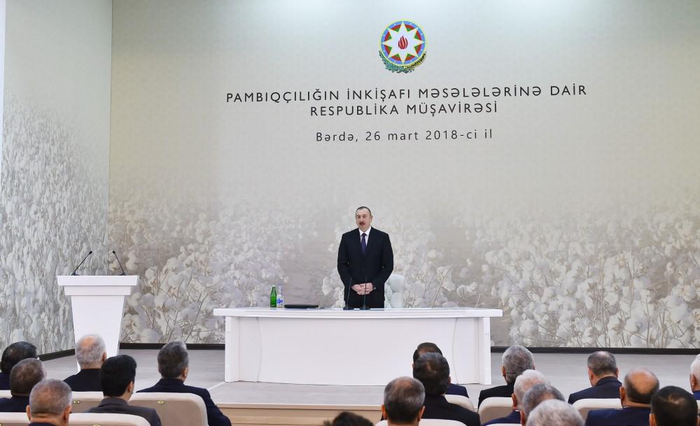 He made the remarks addressing a republican conference on development of cotton-growing in Barda District on March 26.