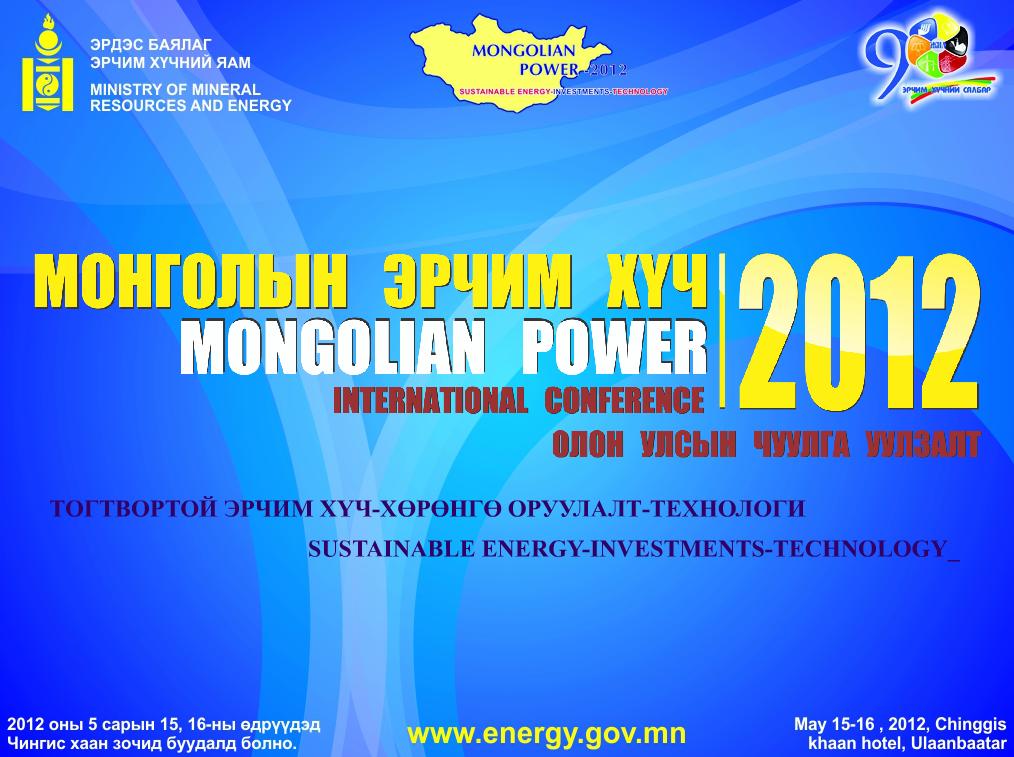 Ulaanbaatar, Mongolia /MONTSAME/ An international conference themed "Mongolian Power-2012: Sustainable energy-investment-technology" will start on Tuesday in Ulaanbaatar city.