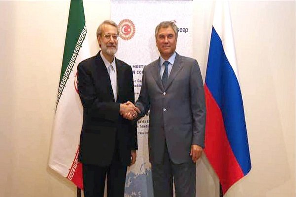 Larijani met with Vyacheslav Volodin, the speaker of Russian State Duma in the Turkish city this afternoon. During the meeting, Larijani referred to "the US aggressive and problematic policies" as one of the major problems that have recently emerged in the world which entail all-out cooperation among all countries to confront them.