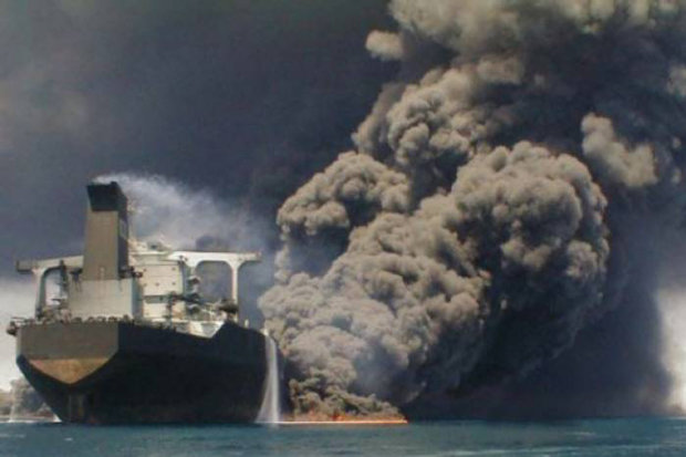 The tanker Sanchi, carrying 136,000 tons of condensate bound for Republic of Korea, and run by National Iranian Tanker Co., hit a Chinese freight ship on Saturday night in the East China Sea and burst into flames after spilling oil. There are growing concerns that the tanker may explode and sink, as 13 rescue boats struggle to control the blaze for a third day.