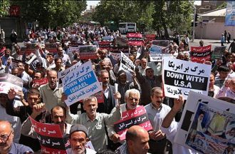 The crowd was shouting, “God is great”, “Down with the U.S.”, and “Death to Israel.”