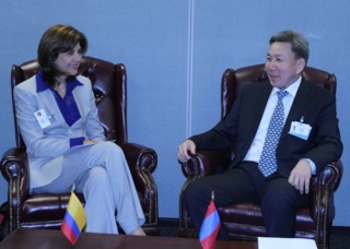 Ulaanbaatar /MONTSAME/ Participating in the 68th session of the United Nations General Assembly, the Mongolia’s Minister of Foreign Affairs L.Bold Tuesday met with his counterpart of Colombia Ms Maraa Angela Holguen in New York, USA.