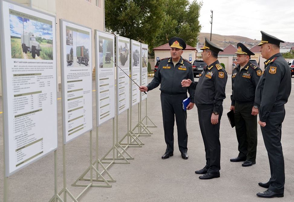Minister Zakir Hasanov was informed of the equipment, purpose, and combat capabilities of command-staff vehicles, installed on the base of various types of wheeled vehicles, recently adopted into the armament to control combat operations.