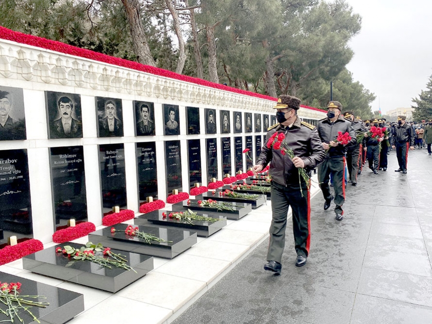 Azerbaijan`s Minister of Defense, Colonel General Zakir Hasanov and the leadership of the Ministry visited the Alley of Martyrs on the occasion of 20 January - National Mourning Day.