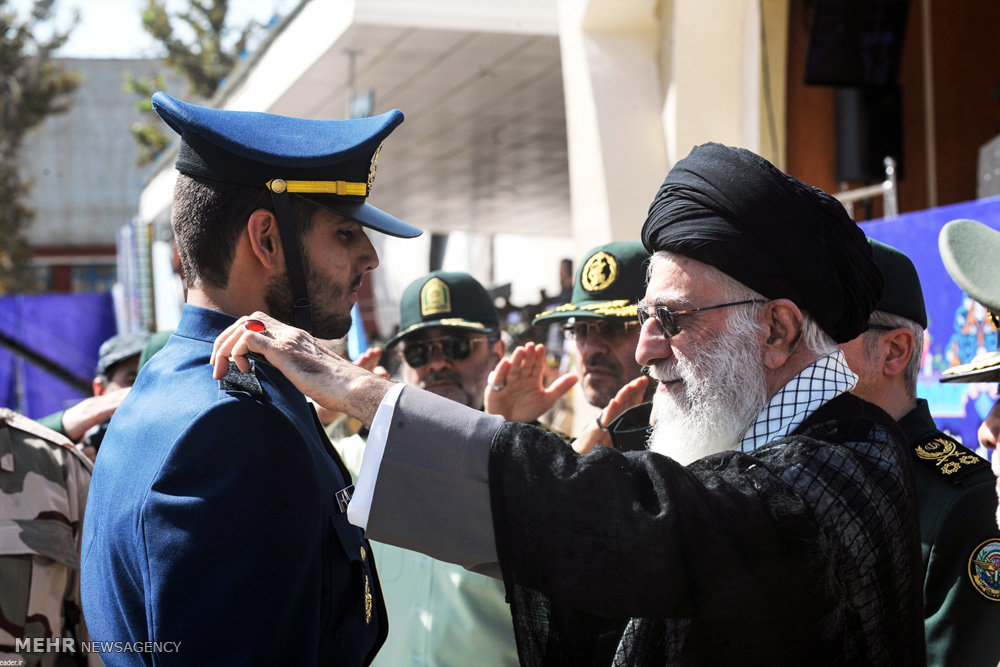 TEHRAN, Sep. 28 (MNA) – Leader of Islamic Revolution Ayatollah Khamenei has addressed a graduation and oath-taking ceremony of students of Shahid Sattari University of Aeronautical Engineering on Wednesday morning. Ayatollah Khamenei told the ceremony in a brief speech that technical and scientific capabilities, piety and belief, and organizational discipline should contribute to preparedness of the military, along with inculcating the new generation of students and the public alike the invaluable experiences and lessons learned during the Sacred Defense; “today, the nation faces a front of diverse enemies, only for the fact that we have insisted on our independence, advocated Islam’s rule, and our Revolutionary ideals; under such situation, the military should remain prepared for the times of needs so that it could serve the nation,” he told the ceremony in Shahid Sattari University, after attending a military parade of the graduated students. Ayatollah Khamenei siad that the Army’s record in the Sacred Defense provides it with a golden chapter of valor and as an acid test of capabilities, the great event was a ground for the Army to prove what it had in terms of spiritual and combat capabilities; “in that apocalyptic event, the Army fight the enemy, relying on its forces and on God and the late Imam Khomeini; you are the heirs to a heavy duty the last generation of the warriors had left; their memory will remain brilliant and forever in the collective conscience of the nation; martyrs who bestowed upon this land greatness, security, and sovereignty,” the Leader lavished praise upon the fallen soldiers of the Imposed War.