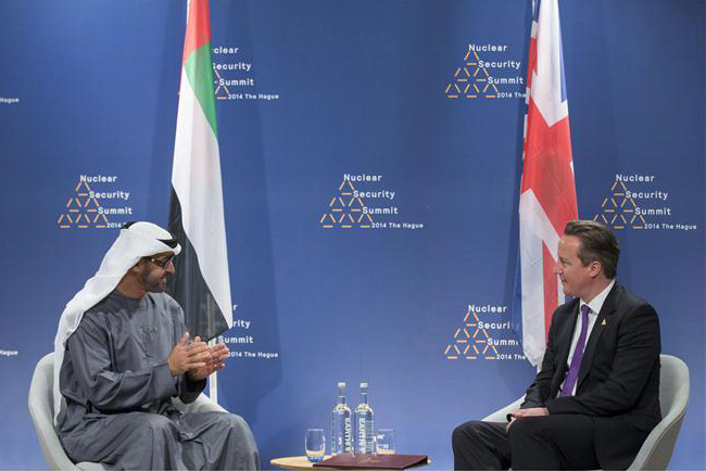 The Hague: His Highness General Sheikh Mohamed bin Zayed Al Nahyan, Crown Prince of Abu Dhabi and Deputy Supreme Commander of the UAE Armed Forces yesterday met with David Cameron, British Prime Minister, on the sidelines of the Nuclear Security Summit 2014 which opened here on Monday.