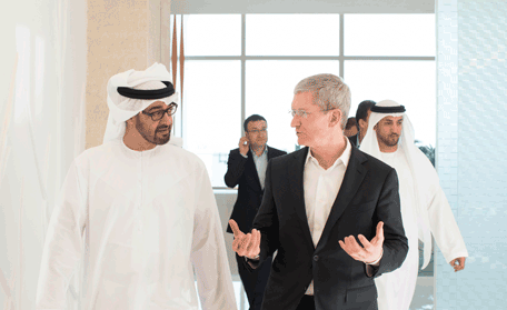 Abu Dhabi: His Highness General Sheikh Mohamed bin Zayed Al Nahyan, Crown Prince of Abu Dhabi and Deputy Supreme Commander of the UAE Armed Forces, received yesterday at Al Mamoura, Tim Cook, CEO of Apple INC., the US multinational corporation that designs, develops, and sells consumer electronics, computer software and personal computers.