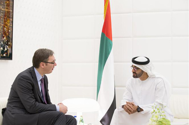 Abu Dhabi (WAM): His Highness General Sheikh Mohamed bin Zayed Al Nahyan, Crown Prince of Abu Dhabi and Deputy Supreme Commander of the UAE Armed Forces, has received the visiting Serbia's Deputy Prime Minister, Aleksandar Vucic. The Crown Prince of Abu Dhabi welcomed the Deputy Prime Minister of Serbia and discussed with him friendship and cooperation ties, and ways to enhance them in the best interest of the two peoples and countries. They also discussed the importance of bolstering the economic cooperation and investment opportunities between the two parties as well as supporting joint projects that could achieve the development objectives of the two countries. The two sides underscored that the UAE- Serbian relations are witnessing continuous growth in a number of sectors, stressing keenness of the leadership in both countries on developing joint work and looking forward to broader horizons of the bilateral cooperation. They also exchanged views on the latest regional and international developments as well as issues of mutual interest. Among those who attended the meeting were Khaldoon Khalifa Al Mubarak, Chairman of the Executive Affairs Authority and Mohammed Mubarak Al Mazrouei, Under Secretary of the Abu Dhabi Crown Prince's Court. – Emirates News Agency, WAM