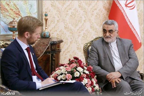 TEHRAN, Feb. 6 (MNA) – Norwegian ambassador to Iran says Norway has always supported the nuclear deal with Iran, describing the deal as an achievement for the NPT and the peaceful settlement of disputes. Lars Nordrum made the remarks in a meeting with the Chairman of the Committee for Foreign Policy and National Security in the Iranian Parliament Alaeddin Boroujerdi on Monday. During the meeting, Norwegian ambassador to Iran said “Norway welcomes the expansion of cooperation with the Islamic Republic of Iran in various fields.” Nordrum expressed his satisfaction with the meeting, saying "the two countries have made good progress in agriculture, fisheries, oil, gas, transportation and renewable energy relations." Regarding the nuclear agreement with Iran known as the JCPOA, Norwegian ambassador to Iran stated "we are not part of the European Union, but we have always supported this agreement," adding that the nuclear deal “is an achievement for the NPT and a peaceful resolution of disputes.” Nordrum also welcomed facilitation of mutual banking relations, hoping that Iran's trade relations with the world, especially with the European countries increase. Alaeddin Boroujerdi, for his part, expressed his hope for expansion of mutual relations, saying “strengthening bilateral cooperation in various fields, especially trade, is one of our most important priorities, which we hope will be achieved through the development of political and parliamentary relations.” Regarding the US threats to withdraw from the nuclear deal with Iran, the Chairman of Iran’s Parliament Foreign Policy Committee in Iranian Parliament said that the US policy will harm the US interests. Boroujerdi also called for the international community to pay close attention to the appalling situation of the people in Yemen. He added that after Syria is stabilized, the terrorists will go back to their countries which requires more security and intelligence cooperation.