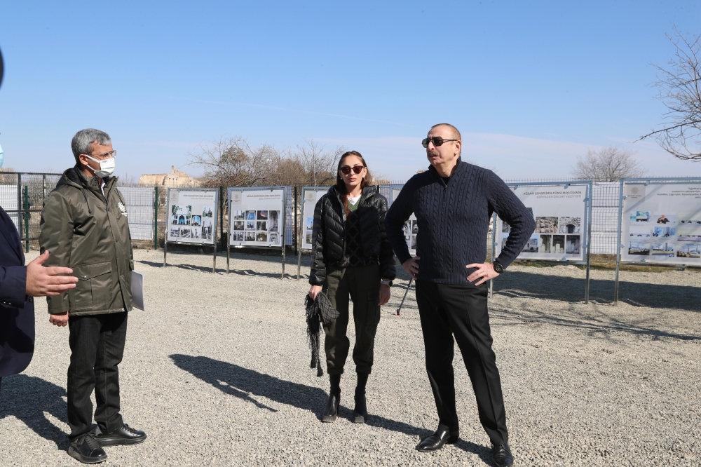 President Ilham Aliyev and First Lady Mehriban Aliyeva viewed progress of restoration work at Aghdam Juma Mosque