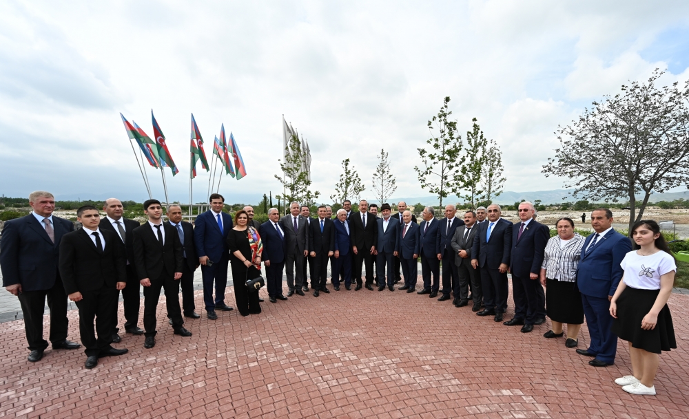 The head of state then attended a ceremony to lay the foundation stone for the restoration of the city of Aghdam and planted a tree.