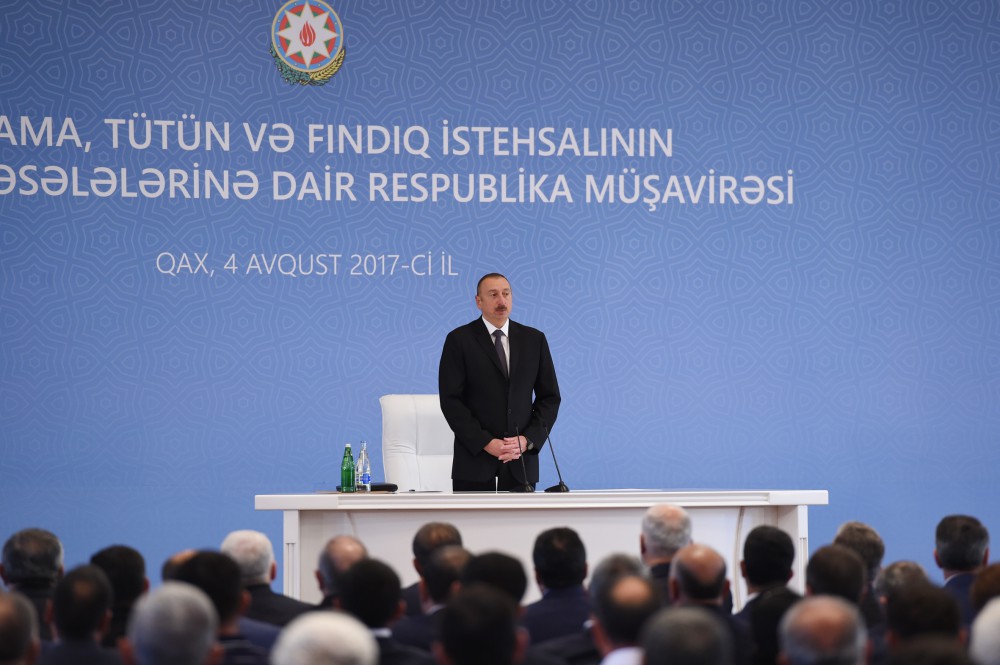 President Ilham Aliyev chaired republican conference on development of sericulture, tobacco and hazelnut production in Gakh