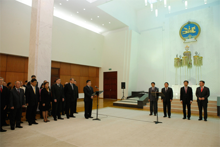 Ulaanbaatar, Mongolia /MONTSAME/ The President Ts.Elbegdorj received on Monday ambassadors, charge d'affaires of the embassies and permanent representatives of international organizations in Mongolia to pass them the New Year greetings.