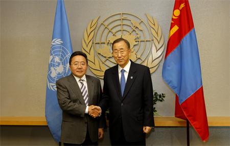 Ulaanbaatar, Mongolia /MONTSAME/ The Secretary-General of the United Nations (UN) Ban Ki-moon has sent to the State Head Ts.Elbegdorj a telegram on occasion of the National Great Festival. The Secretary -General notes that the joyful moments of the Naadam--the Great Festival--that celebrates the national pride and history and is a chance to highlight Mongolia's role in the present interconnected world. He says that the UN highly appreciates Mongolia's efforts and leadership in solving common problems and challenges facing the world. B.Khuder