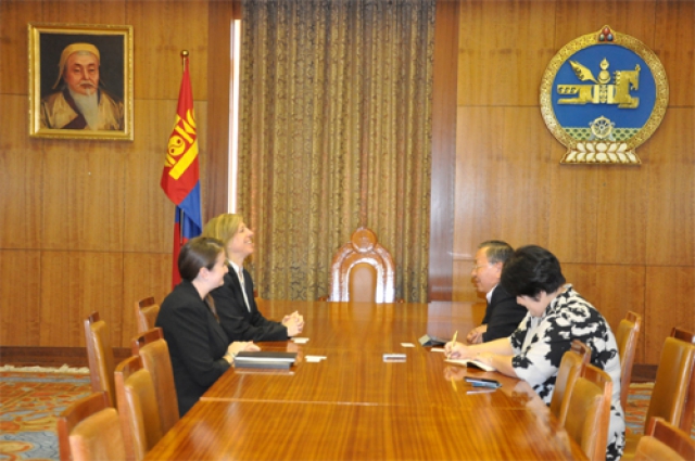 Ulaanbaatar /MONTSAME/ Head of the Presidential Office P.Tsagaan Monday received a delegation of the International Republican Institute (IRI). The delegation included Ms Gretchen A.Kunze, a country representative of the IRI to Mongolia, and Ms Ashleigh Whelan, a senior advisor/deputy director of the Democratic Governance at IRI. Recently appointed the IRI country director for Mongolia, Ms Kunze expressed a satisfaction with the cooperation between Mongolia and the IRI in democracy, and focused on actions and activities of Mongolia to combat corruption, deepen the democratic reforms, share democratic experiences with other countries. Mr Tsagaan wished the IRI country director successes and said Mongolia always thanks the IRI and the Konrad Adenauer Foundation for helping Mongolia in transferring to the democratic and market-economy system. Ms Kunze said great changes happened in Mongolia in the last 24 years and appreciated Mongolia’s success in realizing its own democracy and becoming a good example in its region. The Presidential Office head noted that the action of transmitting into the smart government from big government launched at an initiative of the President Ts.Elbegdorj, in addition, works have started to transfer into the direct democracy from the electoral democracy and to ensure civil participation as well as the direct democracy nationwide, he emphasized.