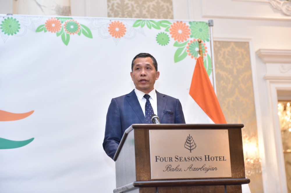 Later in the evening, Ambassador hosted a Reception at Four Seasons Hotel in Baku, which was attended by Azerbaijani government officials, members of diplomatic corps, media representatives and members of the Indian community. Deputy Foreign Minister of Azerbaijan Elnur Mammadov, participated in the event as Chief Guest.