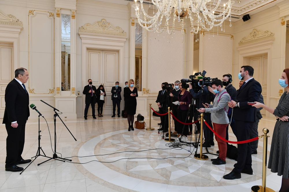 Baku, November 22, AZERTAC On 21 November, following a meeting with President of the Republic of Azerbaijan Ilham Aliyev, Russian Foreign Minister Sergey Lavrov addressed the media and responded to questions from journalists. AZERTAC presents the speech of the Russian Foreign Minister and his answers to questions. - We have completed the negotiations with the President of Azerbaijan, Ilham Heydar oglu Aliyev. The talks were held in the format of our interagency delegation and then additional consultations were held in a narrow format. The main conclusion is that the relevance and the absence of any alternative to the agreement reached by the leaders of Russia, Azerbaijan and Armenia on 9 November, the agreement that stopped the bloodshed and laid the foundation for a long-term settlement of the situation around Nagorno-Karabakh, has been fully confirmed. The President of Azerbaijan today paid special attention to the need for consistent and conscientious implementation of all the components of the joint trilateral statement. Our positions also completely coincide with regard to the need for creating conditions for the restoration of inter-religious and interethnic peace, coexistence and reconciliation. We have discussed a number of specific directions that will contribute to this and which we will jointly implement together with the Azerbaijani and Armenian sides. Among other areas, we are interested in the international organizations of the UN system, the International Red Cross, being actively involved in solving humanitarian problems and working together with Russian peacekeepers and with the Center for Humanitarian Response. The President of Azerbaijan has specific proposals on how to make this work more effective, and we discussed them with interest today. We will continue to work together in this direction. In general, on matters related to bilateral relations, we have noted consistent and progressive development of our strategic partnership and outlined specific steps to return to face-to-face events as soon as the situation with the coronavirus infection allows. This includes the intergovernmental commission, the interregional forum, the Baku Humanitarian Forum and the Forum on Youth Initiatives. We have ample instruments for the development of bilateral cooperation and, of course, we will extensively use them in the future. We have discussed our cooperation in international organizations – the UN, the OSCE, where we have coinciding positions on most key issues. We also have joint projects within the Black Sea Economic Cooperation, there is such an organization, and within the framework of interaction of the five Caspian littoral states. So we consider the results of the talks to be very positive, as they allow us the opportunity to report to the President that his instructions on the visit of the interagency delegation to Armenia and Azerbaijan have been fulfilled. We will now sum up the results and report on our assessments, which, I hope, will form the basis for additional decisions on the development of our ties. I am ready to answer a couple of questions. - Thank you very much, Sergey Viktorovich. “Kommersant” newspaper. Russian intelligence bodies warned earlier that the United States and its NATO allies are trying to undermine the 9 November agreement and squeeze Russia out of the Caucasus. Have you discussed this issue with your partners here in Baku and in Yerevan? What did they tell you? And maybe this issue was raised at your meeting with the Minsk Group co-chairs in Moscow? - At the beginning of our today's talks here in Baku, the President of Azerbaijan noted in general terms that not everyone was impressed with the agreement reached on 9 November. We also note, as you have just mentioned, that there have been attempts to question these agreements, but I think that these attempts will not be crowned with success. First of all, because the co-chairs of the OSCE Minsk Group – Russia, France and the United States – have repeatedly emphasized the need to resolve the Nagorno-Karabakh problem on the basis of the very principles that are now being materialized in the development and implementation of the trilateral joint statement of 9 November. Secondly, of course, we always emphasize – as we also did during the visit to Moscow of the OSCE Minsk Group co-chairs, our French and American colleagues – in relation to this and any other conflict that it is first of all necessary to stop people dying, stop people dying in bloody wars, so that a peaceful life could be established, so that religions and cultures could coexist and people representing different ethnic and confessional groups could live together in peace and security. If we put this at the forefront, then I do not see any reason that would give at least some opportunity to interpret the agreements of 9 November in a negative way or to question them. If we put geopolitical ambitions first, then we cannot do anything about this. But we will firmly reject such attempts and will concentrate on the implementation of the agreements that meet the fundamental interests of the peoples living in this region. - Mr. Lavrov, the trilateral statement provides for the unblocking of economic and transport links in the region. What contribution do you think the implementation of this paragraph can make to the further expansion of economic cooperation between countries of the region? - I think this is one of the key provisions. We spoke about this in great detail today. The President of Azerbaijan is sincerely committed to realizing as soon as possible the opportunities that open up in connection with the unblocking of transport, economic and infrastructure communications and projects. Vital routes intersect in this region, including North-South and East-West. Incidentally, the Turkish side and the Iranian neighbors of Azerbaijan and Armenia are involved in them. In fact, when all the restrictions that have existed for a