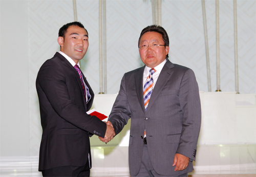 Ulaanbaatar, Mongolia /MONTSAME/ The title of State Honored Sportsman was awarded on Friday to an international master of sports S.Nyam-Ochir. It is awarded to the judoist for winning a bronze medal in the London 2012 Olympic Games in judo pursuant to a decree of the State Head. The same day, state prizes were awarded to coaches and medical doctors who worked together with Olympic athletes of Mongolia. Accordingly, the title of State Honored Coach was awarded to Sh.Bat-Orshikh, a coach at the national selected team; G.Enkhbayar, a general coach at the “Genco” club; Sh.Erdene-Ochir, a senior expert of the Physical Culture and Sport Department of Bulgan aimag; and D.Batmonkh, a coach at the Mongolia's Olympic Boxing Federation. In addition, the title of State Honored Cultural Figure was awarded to J.Otgontsagaan, the secretary-general of the Mongolian National Olympic Committee (MonNOC); and the State Honored Medical Doctor title--to Ch.Nasanbat, a head of the Sports Medical Service at the State Department for Physical Culture and Sport. The Order of Sukhbaatar was bestowed upon Ts.Amarjargal, a boxing coach of the “Erch” boxing club at the Central Intelligence Agency (CIA); the Red Flag Order of Labour Merit--upon A.Gantulga, a boxing coach of the “Aldar” sports club at the Armed Forces and others. The Polar Star Order and the Honorary Medal of Labour went to other foremost coaches, medical doctors and experts. B.Khuder