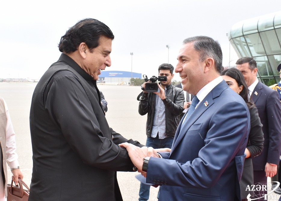 The Speaker of the Pakistani National Assembly was welcomed by Head of the Azerbaijani Parliament's Committee on Economic Policy, Industry and Entrepreneurship Tahir Mirkishili, a member of the Azerbaijan-Pakistan working group on interparliamentary relations Mahir Abbaszade and other officials.