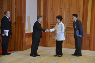Ulaanbaatar /MONTSAME/ Paying an official visit to the Republic of Korea, the Speaker of parliament Z.Enkhbold was received Friday by Ms Park Geun-hye, the President of the country.