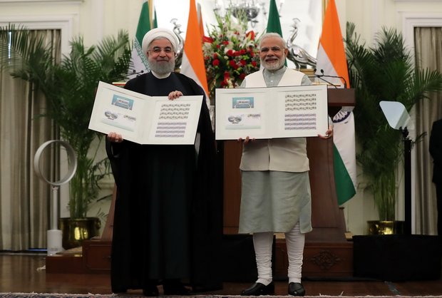 TEHRAN, Feb. 17 (MNA) – The Islamic Republic of Iran and the Republic of India signed 15 documents and MoUs to deepen relations. These documents and memoranda of understanding were signed on Saturday in New Delhi by the high-raking officials of the two countries in the presence of the President of the Islamic Republic of Iran Dr Hassan Rouhani and the Prime Minister of India Narendra Modi. The documents and memoranda of understanding are as follows: 1- Agreement on double taxation avoidance 2- Memorandum of understanding on abolishing diplomatic visas 3- Memorandum of understanding on a framework for cooperation in agriculture 4- Memorandum of understanding in the field of anti-dumping 5- Memorandum of understanding on interim management of Phase I of Chabahar Port 6- Memorandum of understanding between the Islamic Republic of Iran Post Company and the The Department of Posts of India 7- Memorandum of understanding on cooperation between the Presidential Department for Women's Affairs of Iran and the Ministry of Women of India 8- Agreement on extradition of criminals (Consular Affairs) 9- Agreement on judicial assistance in civil and commercial affairs 10- Memorandum of understanding on health, drug and medicine cooperation between the health ministries of the two countries 11- Memorandum of understanding on cooperation in the field of traditional medicine between the Ministry of Health and Medical Education of Iran and the Ministry of AYUSH of India. List of documents: 1- Memorandum of understanding on the issuance of electronic visas 2- Memorandum of understanding on cooperation between the Chamber of Commerce of Iran and the Federation of Indian Chambers of Commerce and Industry (FICCI) of India 3- Memorandum of understanding on cooperation between the Chamber of Commerce of Iran with the Associated Chambers of Commerce (ASSHOCHAM) of India 4- Memorandum of understanding between the Chamber of Commerce of Iran and PHD Chamber of Commerce and Industry of India Also, on the margins of the ceremony, a joint stamp of the Islamic Republic of Iran and Republic of India was unveiled.