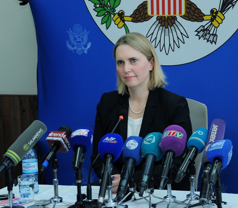 Baku, February 7, AZERTAC "The United States strongly supports the peaceful settlement of the Nagorno-Karabakh conflict and will continue its efforts to achieve this goal," US Deputy Assistant Secretary of State Bridget Brink has told a press conference in Baku. "The fact that the conflict has lasted more than 20 years is really a long time. The OSCE Minsk Group co-chairs are in Baku now. We, as a co-chair country of the Minsk Group, strongly support the peaceful settlement of this conflict," the State Department official said.