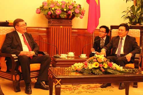 Ulaanbaatar, Mongolia /MONTSAME/ The vice minister of Foreign affairs of Mongolia D.Gankhuyag met with Vietnam's Foreign Minister Mr Pham Binh Minh on Thursday. Mr Gankhuyag is taking part in the consultative meeting of Mongolia-Vietnam Ministries of Foreign Affairs in Hanoi.