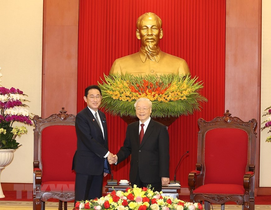 Vietnam's Party leader welcomes visiting Japanese PM Kishida Fumio