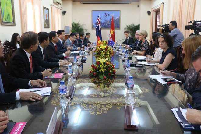 Dong Thap, May 28 (VNA) – The Australian Government considers Vietnam one of its key partners in the Asia-Pacific region, Minister of Foreign Affairs Julie Bishop has said. Bishop made the remark at her meeting with Deputy Prime Minister Trinh Dinh Dung on May 27 before attending a ceremony to inaugurate the Cao Lanh bridge in the southern province of Dong Thap. She spoke highly of Vietnam’s achievements in promoting socio-economic development, expanding foreign relations and boosting international integration. She emphasised the importance of the upgrading of bilateral ties to a Strategic Partnership, affirming that Australia will closely work with Vietnam to realise the contents agreed in the “Joint Statement on the Establishment of the Vietnam-Australia Strategic Partnership” and fulfill objectives set in the Vietnam-Australia Plan of Action 2016-2019. Deputy PM Dung suggested the Foreign Ministries of the two nations hasten relevant ministries and agencies to implement cooperation plans to develop the newly established Strategic Partnership strongly and effectively in the coming time. He applauded the ministries’ plan to organise the first ministerial-level meeting on the occasion, which will kick off a series of newly-formed cooperation mechanisms and frameworks between the two countries. [Australian FM talks about Vietnam-Australia relationship ahead of visit] He also valued Australia continuing to give official development assistance (ODA) priority to Vietnam in the 2018-2019 fiscal year, confirming that Australia’s ODA will be used effectively and practically for the country’s socio-economic development. He proposed Australia continue assisting Vietnam in the fields of infrastructure, agricultural and rural development, climate change adaptation, and human resources development. Regarding bilateral collaboration at regional and international forums, the two sides appreciated the fine coordination between Vietnam and Australia at the forums, especially the Association of Southeast Asian Nations (ASEAN), the East Asia Summit (EAS), the Asia-Pacific Cooperation (APEC), the Asia-Europe Meeting (ASEM), and the United Nations. Minister Julie Bishop affirmed that Australia continues its current positive and consistent stance on the East Sea issue and stressed the importance of maintaining peace and stability in the East Sea, addressing disputes by peaceful measures on the basis of international law, including the 1982 UN Convention on the Law of the Sea. She reiterated her country’s support for Vietnam in its bid to become a non-permanent member of the UN Security Council for 2020-2021, saying that Australia is willing to share its experience in assuming this position for the 2013-2014 tenure. Deputy PM Dung informed his guest that Prime Minister Nguyen Xuan Phuc sent an invitation to his Australian counterpart Malcolm Turnbull to visit Vietnam and attend the World Economic Forum on ASEAN in September this year. He added that Vietnam attaches importance to this meeting and wishes to welcome the Australian PM at the event./.