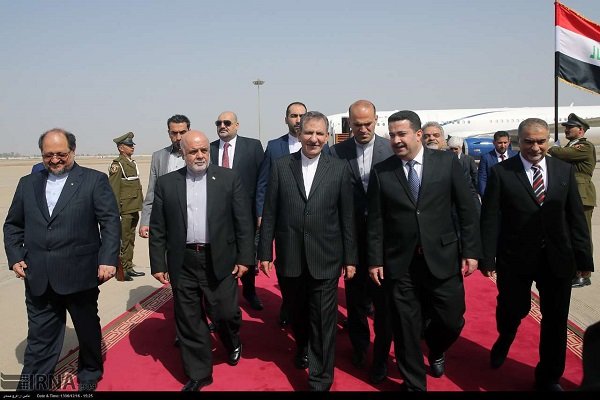 Leading a high-ranking delegation including Iran’s ministers of foreign affairs, agriculture and industry, Iran’s First Vice President Es’hagh Jahangiri arrived in the Iraqi capital Baghdad on Wednesday.