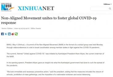 Chinese Xinhua News Agency has published an article headlined “Non-Aligned Movement unites to foster global COVID-19 response”.