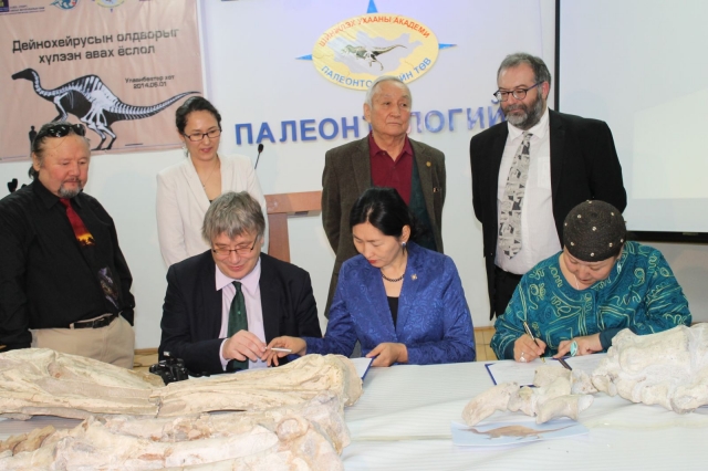 The fossils were presented in Ulaanbaatar to Culture Minister of Mongolia Ts.Oyungerel by a delegation of the Royal Belgian Institute of Natural Sciences led by Dr Pascal Godefroit.