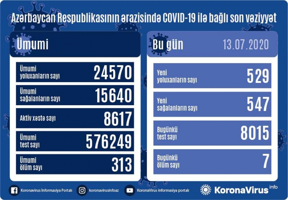 “Azerbaijan conducted 8,015 tests for coronavirus in the last 24 hours, bringing the overall number of tests carried out so far to 576,249,” the Task Force added.