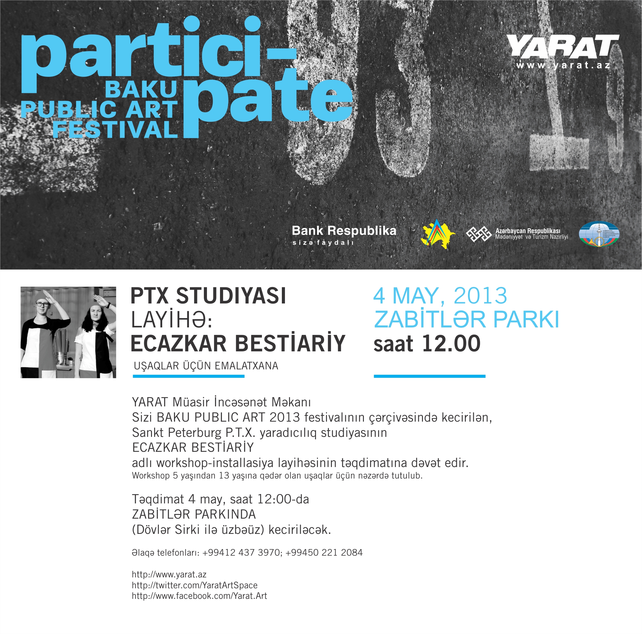 Baku, May 3 (AzerTAc). On 4 May at 12:00 youngsters between the ages of 5 and 13 and their parents will have a chance to take part in a master class by the Russian art studio “P.T.H.” as guests of the Participate Public Art Festival. The Arts Collective “P.T.H.” is visiting Baku as part of the Participate Public Art Festival organised by the YARAT Contemporary Art Space.