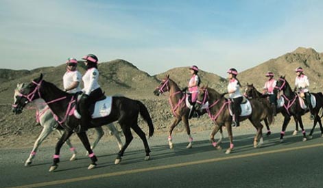 Sharjah: Her Highness Sheikha Jawaher bint Mohammed Al Qasimi, wife of the Ruler of Sharjah, International Ambassador of the World Cancer Declaration and Union International for Cancer Control (UICC) International Ambassador for Childhood Cancer, Founder and Royal Patron of the Friends of Cancer Patients charitable society (FoCP), has announced the launch of the 4th annual Pink Caravan Ride, which will take place from Feb 15th - 25th next year. An initiative of Friends of Cancer Patients, Pink Caravan's first edition was launched in 2011, under the gracious patronage of H.H. Dr. Sheikh Sultan bin Mohammed Al Qasimi, Member of the Supreme Council and Ruler of Sharjah, and his wife, H.H. Sheikha Jawaher bint Mohammed Al Qasimi. The initiative's mission is to educate individuals, families and communities in the UAE about breast cancer - particularly the importance of regular self-examination and early detection - and to dispel the social stigma, inhibitions and myths around the subject, in addition to offering free screening services to all residents of the UAE. During the eleven-day expedition, the caravan, accompanied by mobile detection clinics, will engage in a horseback ride across the seven Emirates, starting off in Sharjah, then heading to Fujairah, RAK, Umm al-Quwain, Ajman, then via Sharjah again to Dubai, Al Ain, and concluding the ride at the capital, Abu Dhabi. Commenting on this occasion, H.H. Sheikha Jawaher Bint Mohammed Al Qasimi said, "Pink Caravan continues to ride for courage and hope for the fourth year, representing FoCP in the battle against breast cancer, spreading awareness, and offering screening services, including education on the importance of monthly self-examination. In addition, the Pink Caravan Medical teams will be providing annual mammography and medical check-ups, all in accordance with international best practices and standards. We are aware of the social stigma associated with breast cancer, and we have come a long way in breaking this social barrier, and promoting a scientifically sound approach." She also outlined the numbers of cases detected during last year's ride, expressing her compassion with the 14 cases diagnosed with breast cancer, including one Emirati man, all currently receiving treatment. "Pink Caravan's mission is to encourage all segments of society to get involved in the fight against breast cancer, through fund raising initiatives aimed at securing the sustainability of early detection activities, as well as supporting people undergoing treatment, both financially and morally." "We are determined to achieve successful results in 2014 which surpass those we have achieved in previous years. We plan to achieve this by expanding our sphere of awareness, as well as using the most advanced medical equipment for early detection during the eleven-day ride, with special focus on the volunteer aspect of the programme, which has been an instrumental aspect of our success. In this context, I would like to thank all the riders and medical professionals who volunteered in this initiative, and made it possible to screen thousands from the different parts of the UAE." Sheikha Jawaher concluded by inviting all public and private entities in the UAE, as well as all society members, to support and interact with the Pink Caravan, particularly after the great success Pink Caravan had achieved in the past few years. Commenting on the same occasion, Abdul Rahman bin Mohammed Al Owais, UAE Minister of Health, praised the great efforts and the role H.H. Sheikha Jawaher is playing in spreading awareness of cancer, as well as supporting cancer patients all over the UAE. He said, "The UAE Ministry of Health has supported Pink Caravan since its beginning, and we consider it one of the leading and most innovative awareness initiatives in the UAE. The Pink Caravan succeeded in reaching different parts of the UAE, delivering its message about the importance of early detection regarding breast cancer, and creating engagement and interaction both officially and socially." – Emirates News Agency, WAM