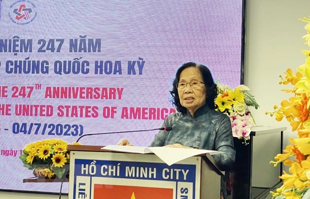 HCM City, July 13 (VNA) - Since the normalisation of their relations, Vietnam and the US have together achieved significant accomplishments, President of the Vietnam-US Friendship Association in Ho Chi Minh City Nguyen Thi Ngoc Phuong has affirmed at a July 12 gathering to mark the 247th anniversary of the US Independence Day (July 4, 1776-2023) in the southern Vietnamese metropolis.