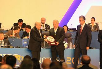 Mehdi Mohammad Nabi, the general secretary of Iran Football Federation, received the Bronze Award for having contributed a decade of service to the development and enhancement of the game in the continent.