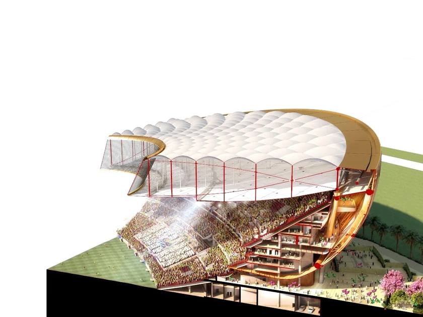 Describing Lusail Stadium, Fox said: "A geometrically-elegant stadium that is built for its climate. We hope that the seating bowl will delight fans and players alike. The new stadium will be an enduring symbol for the legacy of the 2022 World Cup. Also, the roof is one of the largest tensile, cable-net stadium roofs anywhere in the world. The 307m diameter ‘spoke-wheel’ roof creates a striking pattern that brings environmental comfort while also unifying the entire stadium under a single envelope. The roof’s design allows enough light in for pitch growth, while providing shade to reduce the need for air conditioning."