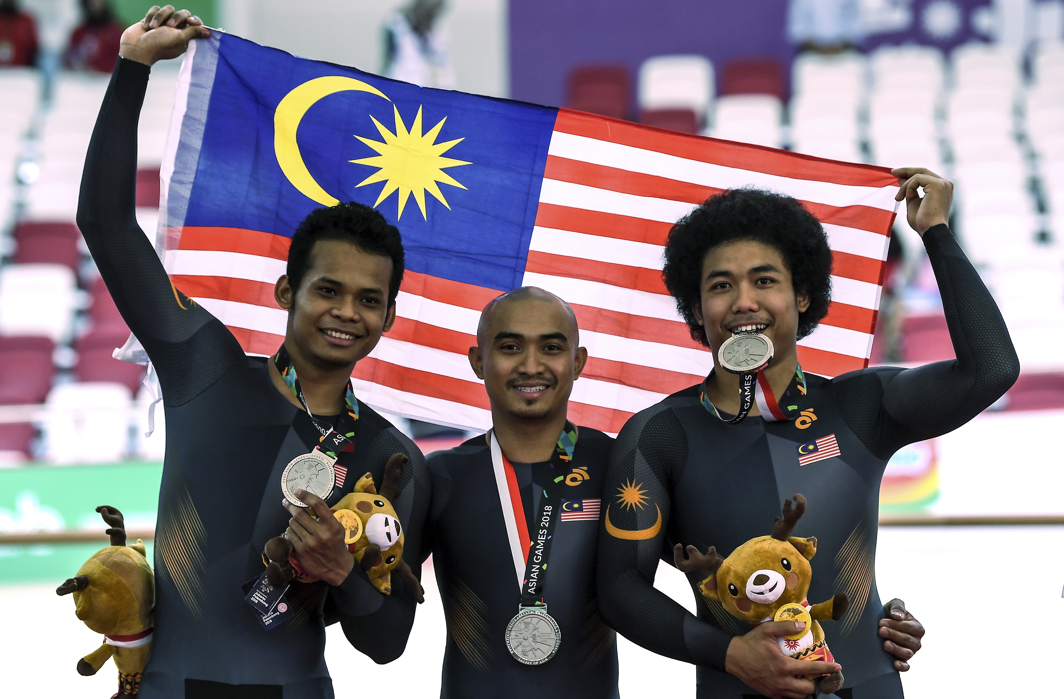JAKARTA, Aug 28 (Bernama) -- The Malaysian track cycling squad has failed in its mission to bag the men’s team sprint gold medal on the opening day of track cycling competition in the 2018 Asian Games Jakarta-Palembang at Jakarta International Velodrome here Monday. In the final, the national trio comprising Rio Olympics silver medalist, Mohd Azizulhasni Awang, Muhammad Shah Firdaus Sahrom and Muhammad Fadhil Mohd Zonis (photo) had to settle for silver after being outpaced by China’s combination of Li Jianxin, Xu Chao and Zhou Yu. China clocked 44.160 seconds while Malaysia recorded 44.598 seconds. Japan took the bronze medal after defeating South Korea with a new Games record of 43.899 seconds compared to 43.976 seconds by the Koreans. Earlier, Malaysia set a new Asian record with 43.934 seconds in the qualifying round before it was erased by the Japanese trio of Kazuki Amagai, Yudai Nitta and Tomohiro Fukaya who later claimed the bronze medal. Mohd Azizul when met by Malaysian media after the medal presentation ceremony said he was happy to end the medal drought in the event apart from helping to set a new national record to crack the 44.752 seconds record set by him, Mohd Rizal Tisin and Josiah Ng at the 2008 Beijing Olympics. “I am happy to meet our mission of breaking the record created 10 years ago and I told my teammates to stay focused as it is their debut appearance in the Asian Games,” said Mohd Azizul. Sharing the same views was the national track cycling head coach, John Beasley who was pleased with his charges’ performance despite failing to grab a gold medal. “I knew the boys would go faster because it is Asian Games, so they just show how competitive they are by winning the silver medal, but I must admit that we still got a lot of work to do,” the Australian coach added. However, the women’s team sprint squad of Farina Shawati Mohd Adnan and Anis Amira Rosidi failed to qualify for the event final. They were placed sixth out of eight teams in the qualifying round with a time of 35.261 seconds. China won the event after defeating Hong Kong in the gold medal decider while South Korea took the bronze medal after beating Japan in the bronze medal deciding race. (photoBERNAMA) -- BERNAMA
