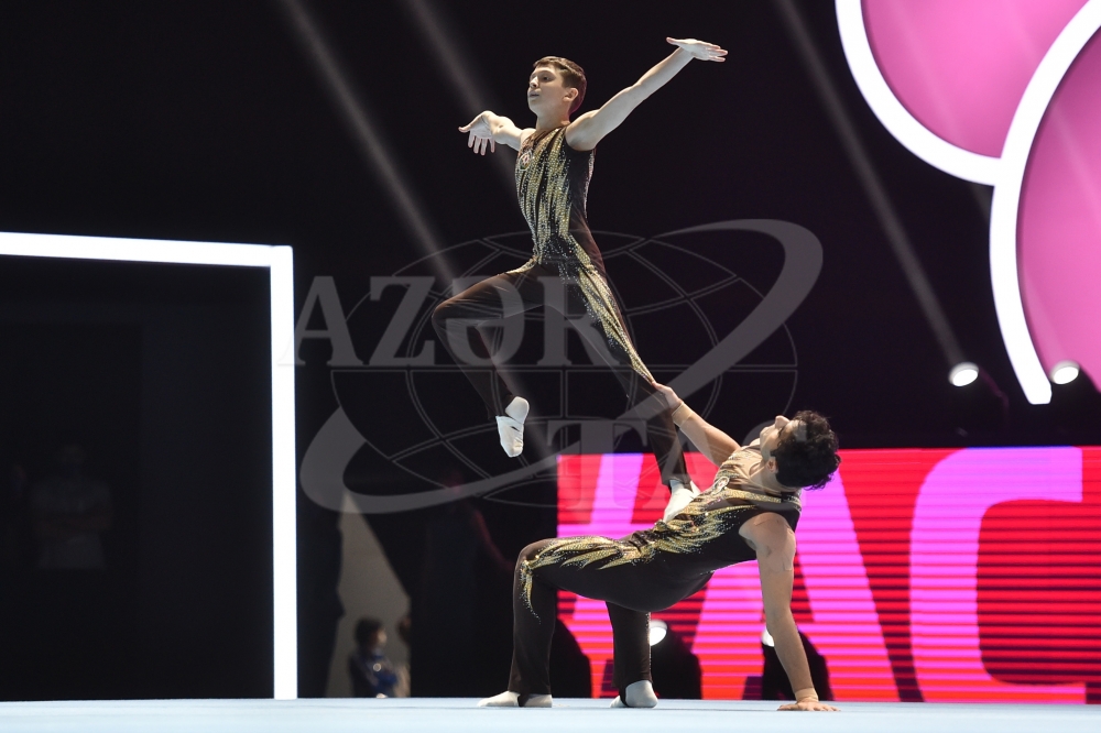 Azerbaijani men`s pair Daniel Abbasov and Murad Rafiyev have qualified for the final of the 28th FIG Acrobatic Gymnastics World Championships in Baku. They scored a total of 26.600 points.