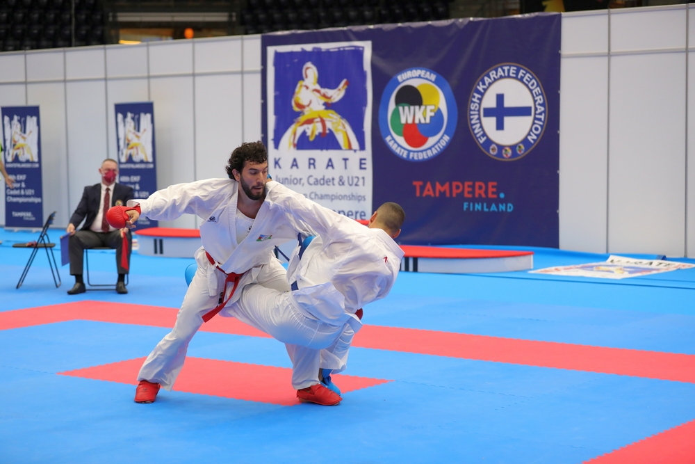 Azerbaijani karate fighter Aminagha Guliyev has claimed gold in the men`s 60kg kumite event at the 48th Karate Junior, Cadet and U21 European Championships in Tampere, Finland, becoming a two-time European champion.