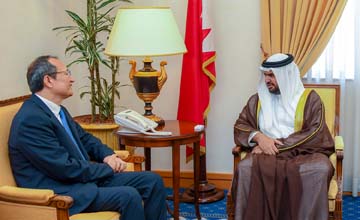 Manama, Aug. 13 (BNA): Bahrain Basketball Association (BBA)'s Chairman His Highness Shaikh Isa bin Ali bin Khalifa Al Khalifa received the Chinese Ambassador to Bahrain, An Wa’er.