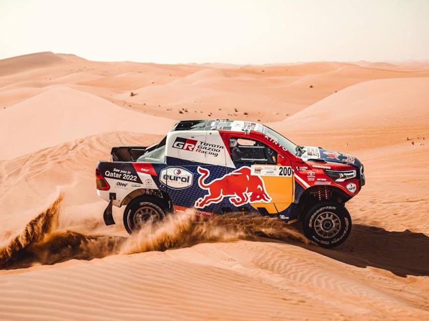 Abu Dhabi, November 11 (QNA) - The Toyota Gazoo Racing crew of Nasser Al Attiyah and Mathieu Baumel claimed victory on the 30th anniversary edition of the Abu Dhabi Desert Challenge, increasing their lead in the FIA World Cup for Cross-Country Rallies with one round remaining. Lucio Alvarez and Armand Monleon finished second in another Hilux, while Denis Krotov and Konstantin Zhiltsov rounded out the podium in a MINI John Cooper Works Buggy.