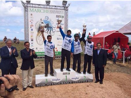 ANCONA, ITALY: UAE Vice President, Prime Minister and Ruler of Dubai His Highness Sheikh Mohammed bin Rashid Al Maktoum attended the Italian Endurance Race at Ancona in which the Dubai Crown Prince H.H. Sheikh Hamdan bin Mohammed bin Rashid Al Maktoum clinched the title for the second year in a row. With riders from 13 countries taking part in the event, Emirati riders dominated all four stages of the 120-km race and won the first three places. Sheikh Hamdan finished first with a time of 05:20.53 hours followed by Sheikh Hasher bin Mohammed Thani Al Maktoum (05:20.54 hours) and Ghanem Al Oaisi shared the third place with Abdullah Al Marri (05:20.55 hours). In a statement to the Government of Dubai Media Office, Sheikh Hamdan praised the excellent preparation of Emirati riders and their efforts in securing the golden title for the UAE in which His Highness Sheikh Mohammed bin Rashid Al Maktoum led Emirati riders to claim the FEI World Endurance Championship in Euston Park, Britain in 2010. Sheikh Hamdan noted the high level of preparedness of Emirati riders in their preparations for the World Endurance Cup as part of the Alltech FEI World Equestrian Games Normandy 2014 next August. He added that UAE has gained reputable status in the field of endurance horse racing all over the world. Meydan Chairman and CEO Saeed Humaid Al Tayer congratulated the Emirati team headed by the Crown Prince of Dubai for a well-earned victory. Concluding the race, Sheikh Hamdan and his teammates were presented with trophies amid applause and cheers from audience. Also attending the race were, Minister of Economy Sultan bin Saeed Al Mansouri, Director of Dubai Ruler's Office Lt. General Musabbah Rashid Al Fattan, UAE Ambassador to Italy Abdulaziz Naser Al Shamsi, Dubai Director of Protocol and Hospitality Khalifa Saeed Suleiman, Meydan Chairman and CEO Saeed Humaid Al Tayer and a number of officials and endurance race enthusiasts. – Emirates News Agency, WAM