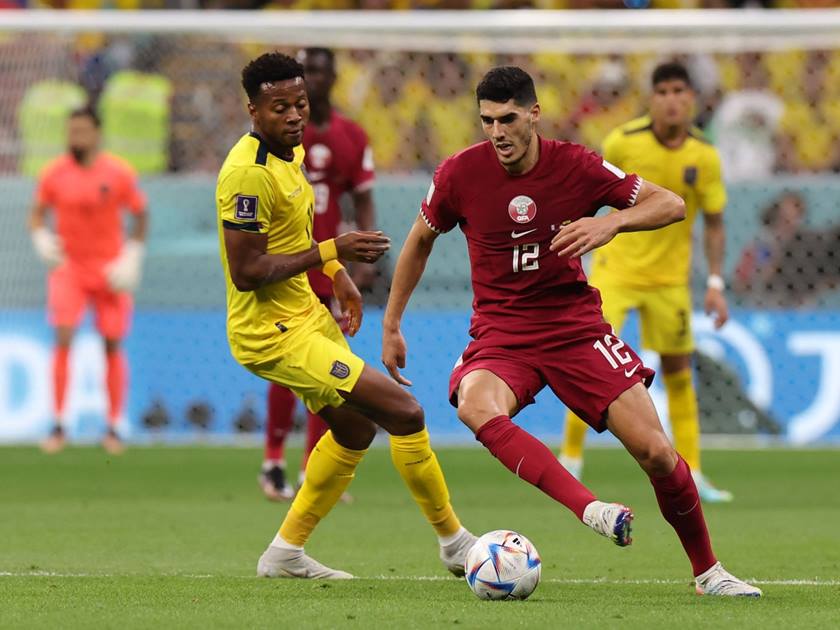 Qatar national team received four yellow cards for Saad Al Sheeb, Almoez Ali, Karim Boudiaf, and Akram Afif. Ecuador's Moises Caicedo and Jason Mendez got yellow cards each.