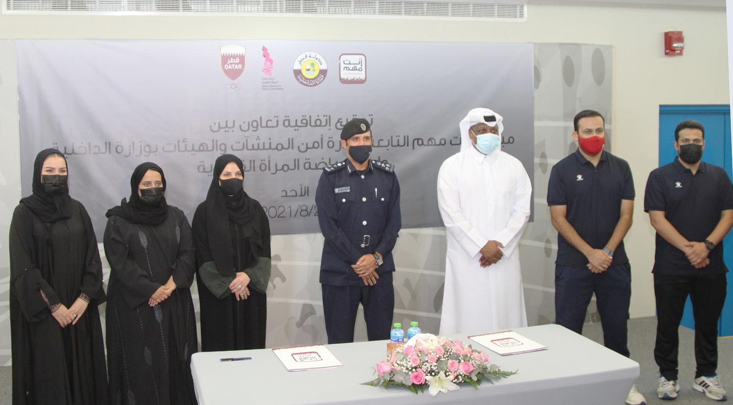 The agreement was signed by Assistant Director of the Authorities and Missions Security Department of the Ministry of Interior Brig. Gen. Jassim Mohammed Al Hail and Assistant Secretary of the Women's Sport Committee Maha Yousef Al Abduljabbar.